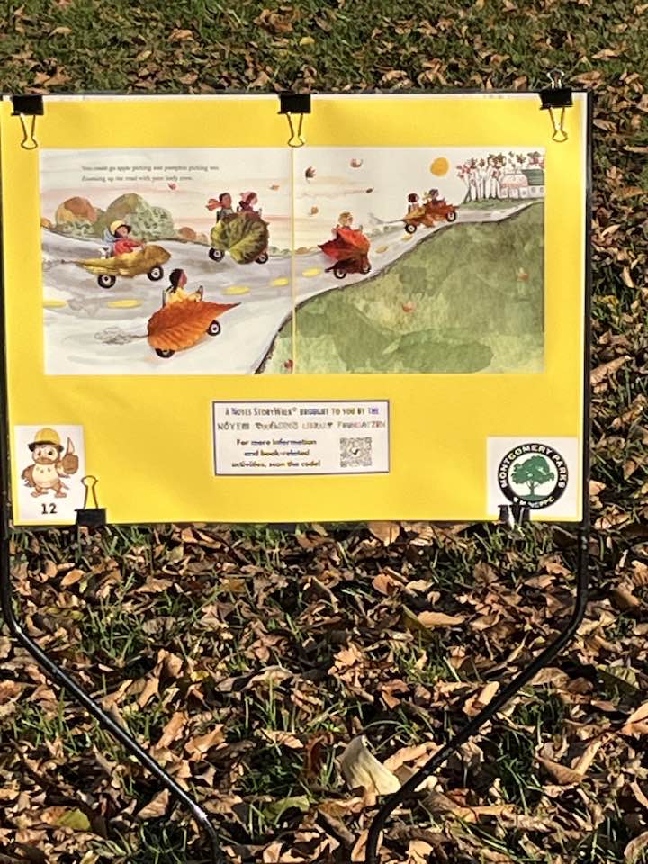 Speaking of reading, we were walking in Kensington (Maryland—no palaces there, but lots of fab Victorians), and we happened upon the Noyes Library Story Walk. They set up signs featuring illustrations from children’s books along a stone path. The theme changes from time to time, and there are QR codes on each sign if you want to learn more. This is brilliant. Every library should do this, even if that means adding a stone path.