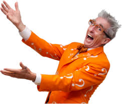 There is a strange man in a bright orange suit with question marks all over it, who frequents my favorite coffee place. I thought he was crazy*, but it turns out he’s just Matthew Lesko.